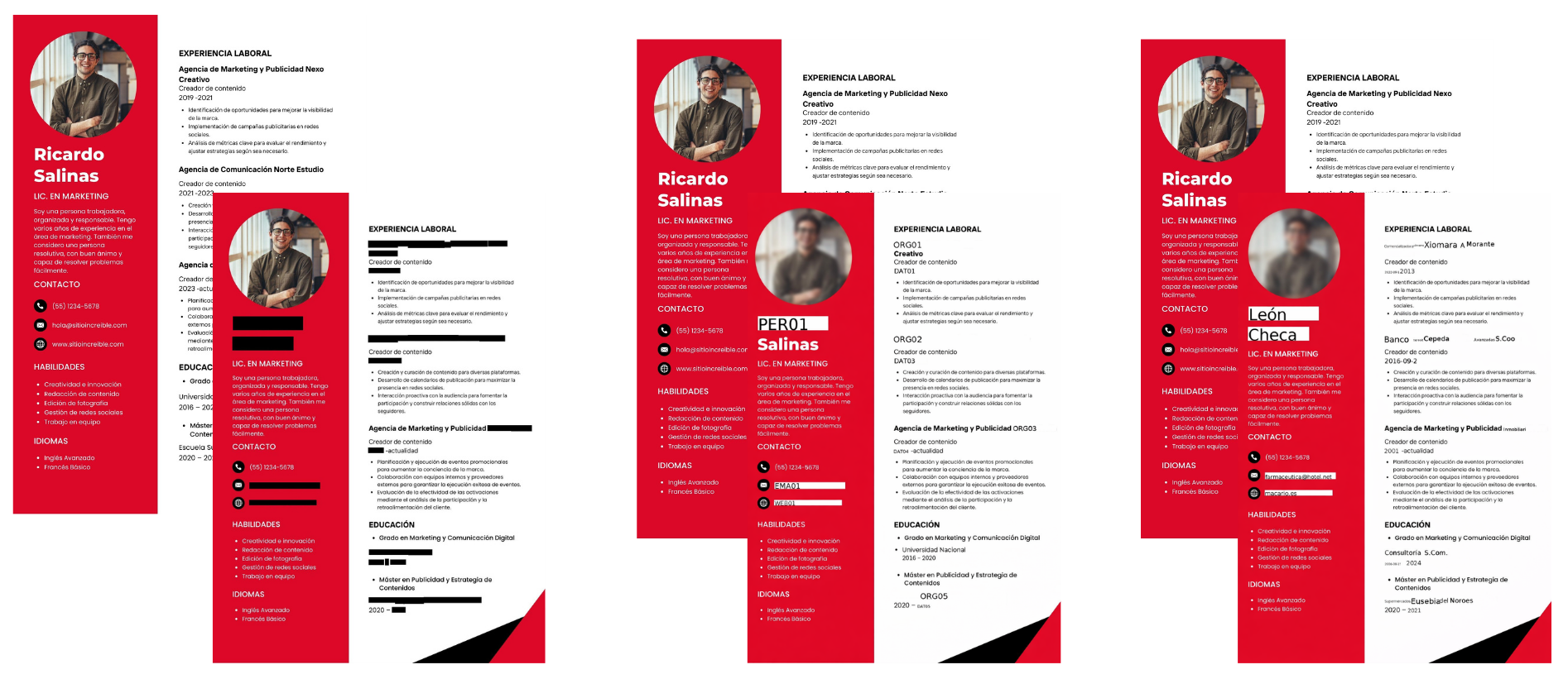 Este método consiste en sustituir la información personal por caracteres genéricos (como asteriscos o tachados). Es útil para la ocultación directa en documentos destinados a publicación pública, aunque limita la reutilización del contenido.